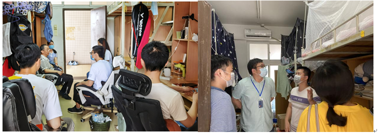 谈球吧目前一共返校356名研究生,继研究生疫情防控第一课以后,为了更好的了解员工在宿舍的生活情况,更好的做好研究生指导工作,近日,谈球吧各位导师以PI小组为单位,走访组内研究生的宿舍,加强了师生间的交流,并解决员工在生活中所遇到的种种问题。