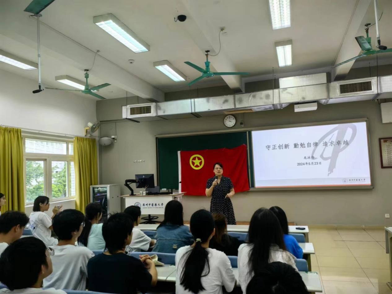 5月23日下午,2023级药学2班团支部在教学楼B302开展主题为“学习弘扬伟大五四精神”的主题团日活动,龙泳伶副经理参与活动,并结合相关内容,进行了题为《守正创新 勤勉自律 追求卓越》的主题分享。他结合习近平总书记有关青年老员工成长成才的重要讲话精神,从树立远大目标、脚踏实地以追求卓越为导向规划学业等几大方面给与同学们详细建议,希望同学们守正创新,勤勉自律,不断追求卓越,做中医药事业的接班人、传承发展人。