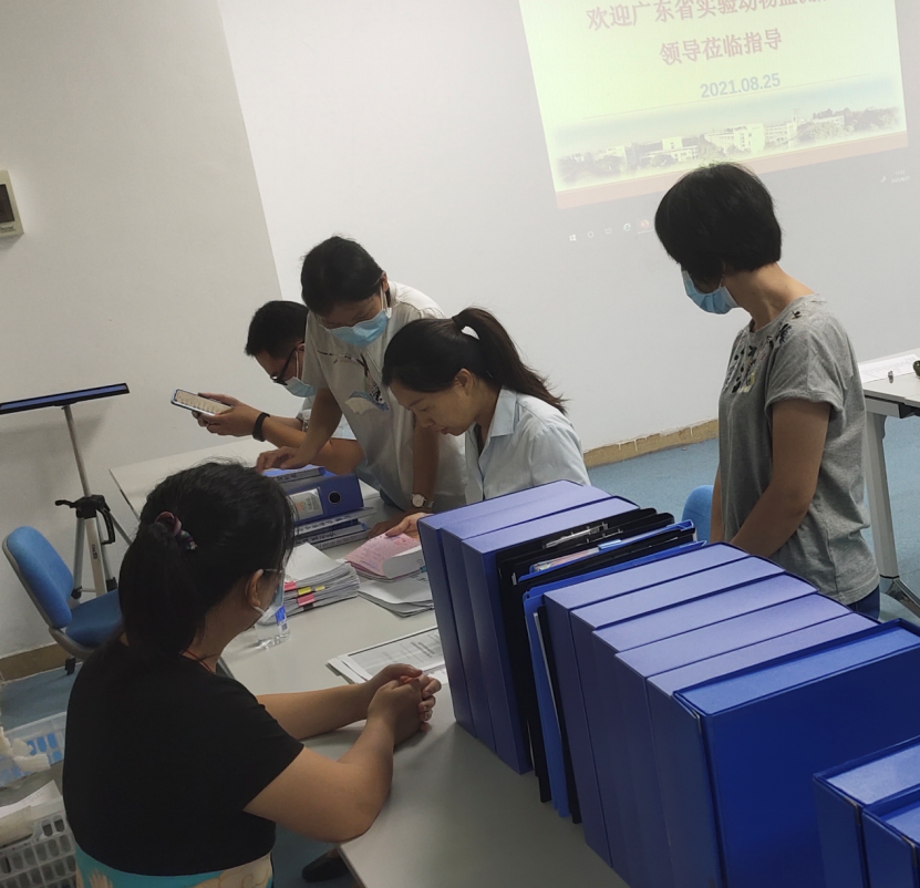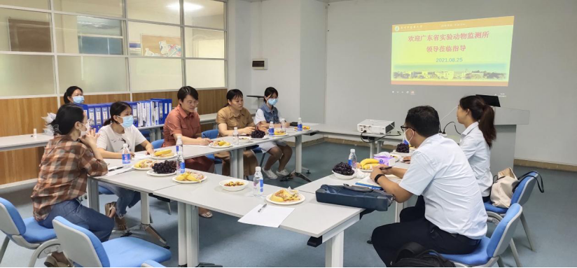 2021年8月25日上午,广东省科技厅实验动物监测所王静、丛锋两位领导到公司SPF级动物房,对实验动物行政许可执行情况进行实地核查。出席核查现场会议的有龙泳伶副经理、动物房管理办公室主任熊天琴教授、创新服务平台主任荣莉教授及动物房其他相关老师。