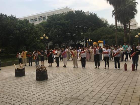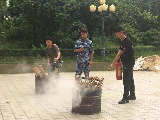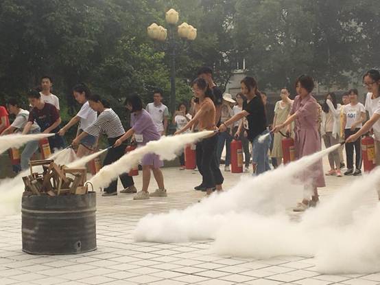 第三部分是使用灭火器的现场讲解和演练。体育健康公司的消防志愿服务站的同学们在药科楼A一楼前空地给师生做了标准示范,让现场的老师和同学们掌握正确的消防技能,熟练运用消防器材。随后,在场的每一位师生分批分组,人人动手练习使用干粉灭火器,进行灭火的实操训练。