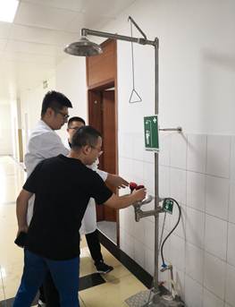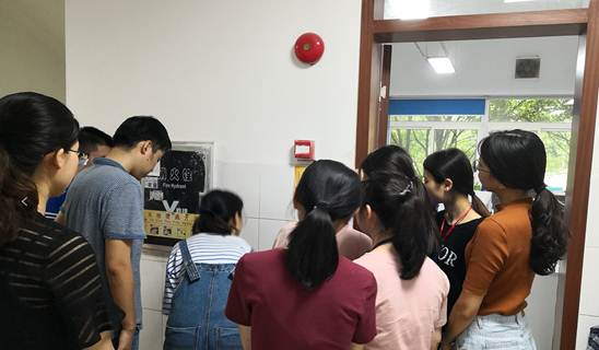 (一)疏散演练:在公司保卫处消防科组织下,摸拟火警响铃,引导在实验室学习工作的100余名师生迅速有序地从药科楼各层疏散到安全地带。实验室疏散演习,不仅增强了师生们消防安全意识和自防自救能力,同时对影响消防警铃等安全设施功能发挥的因素进行了排查并提出完善建议。