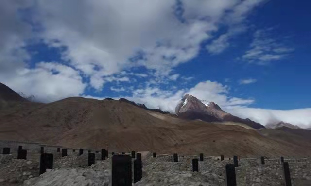 经历了吐鲁番的炎热后,因为任务需要,我踏上了前往最美阿里的路途,途中经历了11天的跋山涉水,攀爬过三个5000多米的高山来到了祖国最严寒的西藏阿里。路途中经过了康西瓦烈士陵园,我深深的感受到:艰难岁月的痛苦,胜利的精彩与爱国的情怀,都让人热血沸腾。康西瓦,维吾尔语“有矿的地方”。昆仑山与喀喇昆仑山两大山脉在此相拥,形成了新藏线上著名的康西瓦达坂。站在海拔4269米伸手接天的达坂向东南方向眺望,寂静荒凉的山坡上有一座高耸的纪念碑,纪念碑所在地就是被高原官兵视为心灵家园和精神高地的康西瓦烈士陵园。