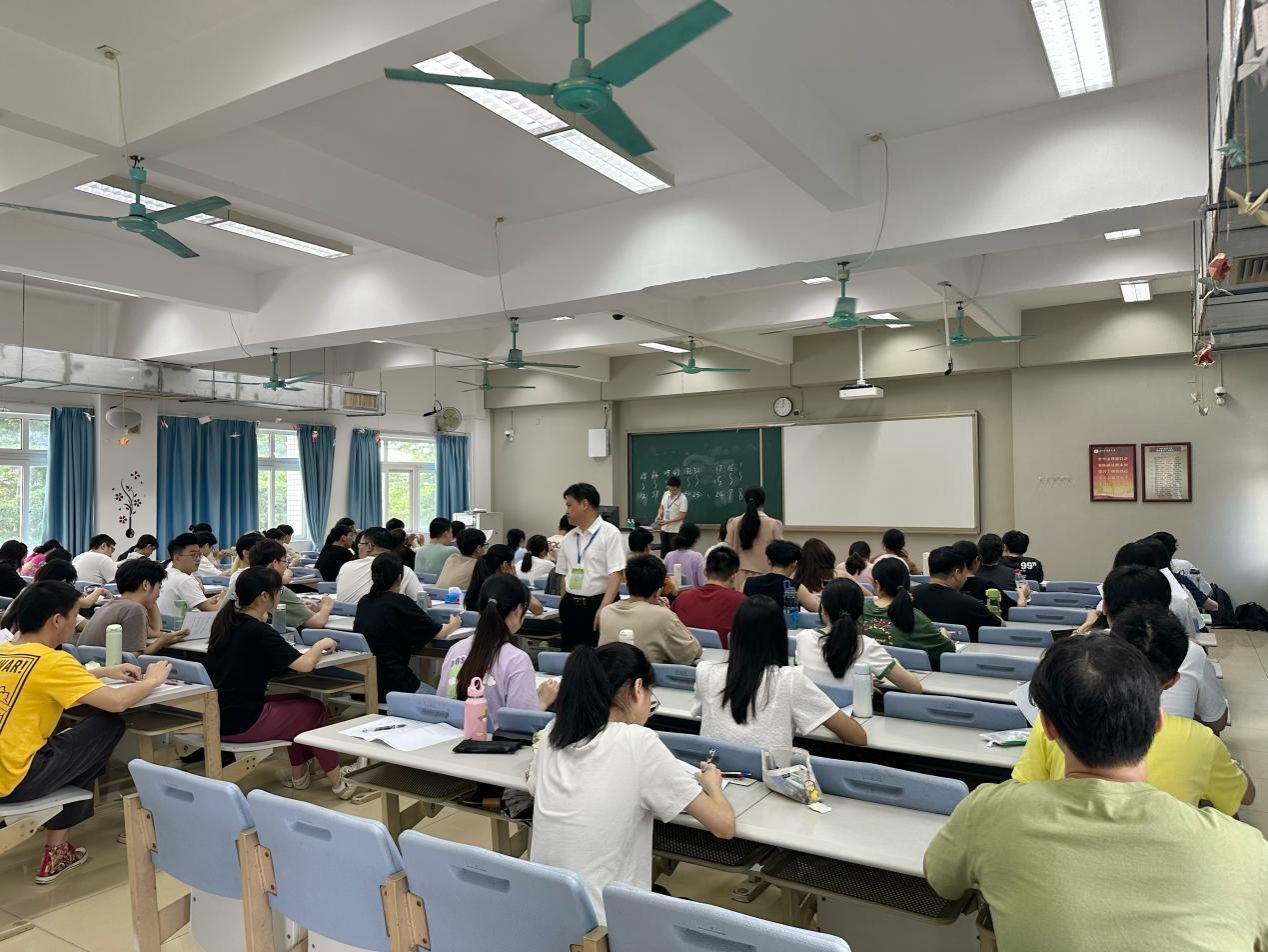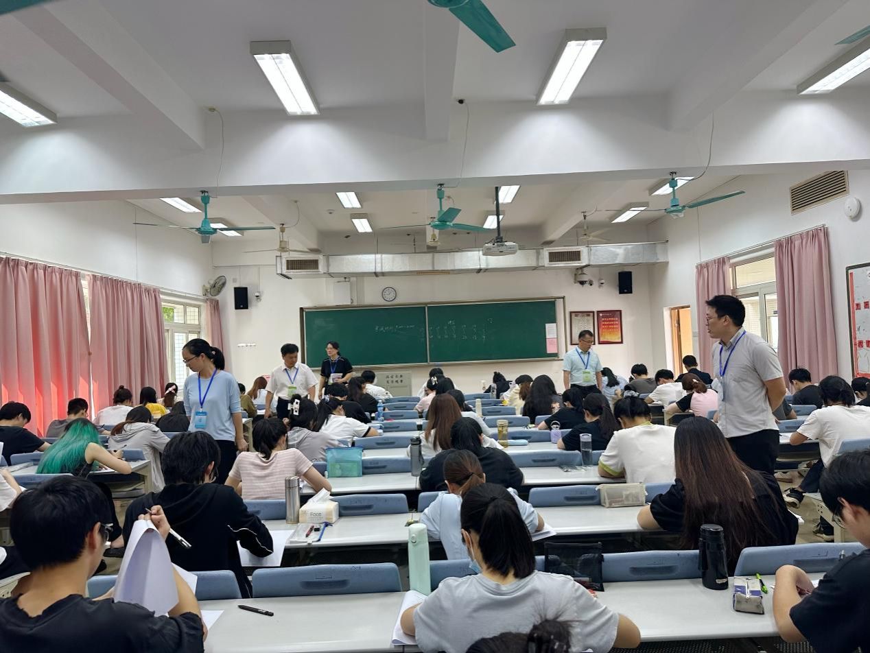7月10日,2022-2023学年第二学期期末考试正在进行。为严肃考风考纪,谈球吧经理詹若挺率队,公司党委副书记陈其煌、副经理龙泳伶、副经理徐晖及党政办、学工办等一行8人,对谈球吧考场进行巡考。