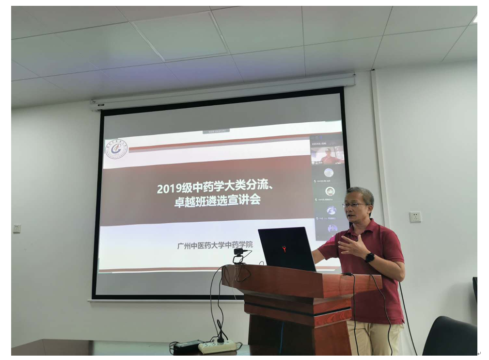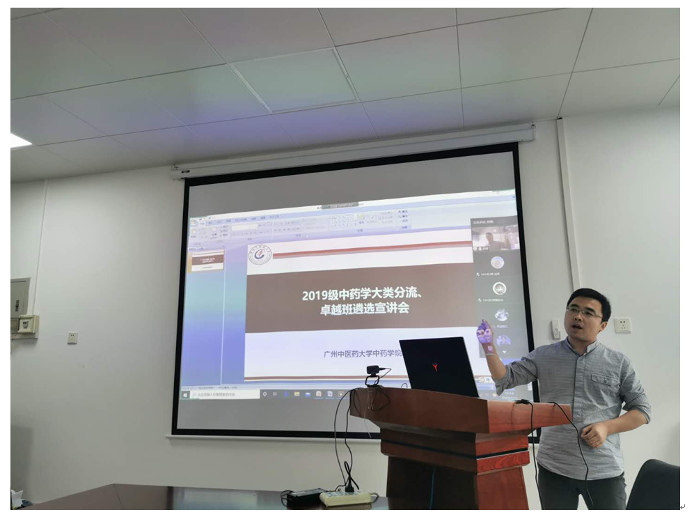 5月20日下午,谈球吧通过腾讯会议的方式召开2019级中药学类专业大类招生专业分流暨2019级澳科大联合培养中药卓越班遴选宣讲会。公司在药科楼B325会议室设主宣讲区,龙泳伶副经理,陈其煌副书记,中药学、中药资源与开发专业宣讲专家,党政办教务员药婧,辅导员胡彩,2018级中药卓越班两位同学代表及2019级中药学专业全体同学参会,会议由龙泳伶副经理主持。