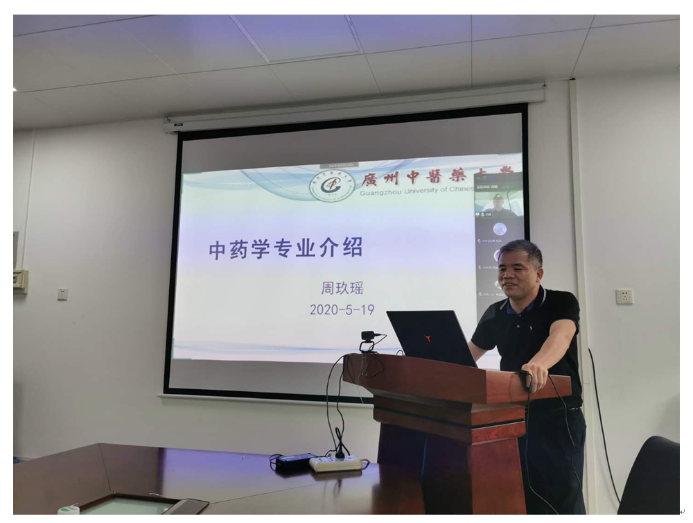 会议同时连线了澳门科技大学中医药公司周华副经理。周华副经理从澳门科技大学概况、澳科大国家重点实验室、澳科大学术科研成绩、员工学习情况等方面为同学们展示了多方位视角的澳门科技大学。也对即将遴选组成的2019级中药学卓越班同学表示欢迎,希望大家能通过此次交流学习有更宽阔的国际视野,更好的专业发展。