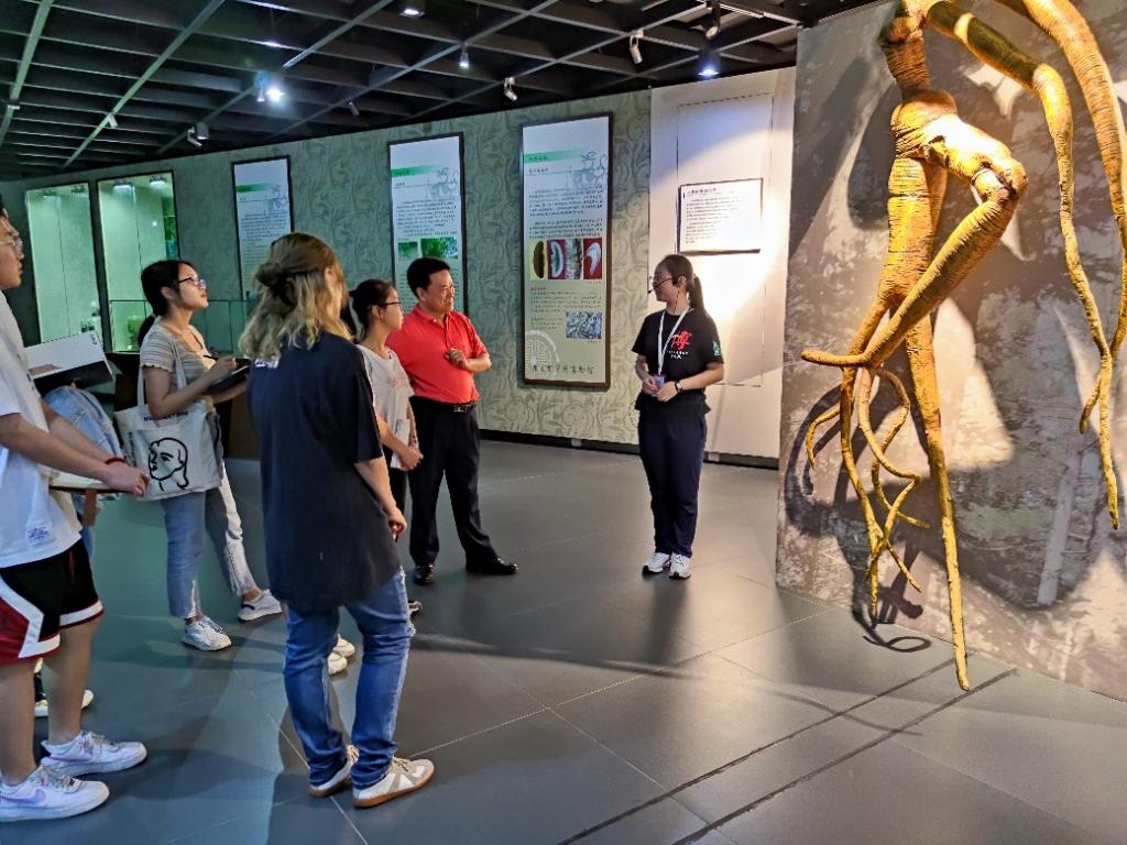 广东中医药博物馆集中医药文物、药材标本的收藏、陈列和研究于一体,是华南地区最大的医药科技类博物馆。在讲解员的带领下,师生一行认真听取每一个单元的讲解。参观期间,詹经理对许多陈列柜中的中医药如数家珍,向同学们讲解了很多中医药相关知识。谈及道地药材,詹经理向同学们解释了“道地”的含义,并以春砂仁、高良姜、化橘红等岭南道地药材为例,向同学们展示了中药背后的魅力。