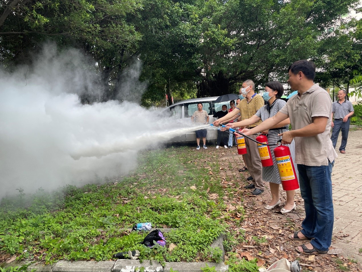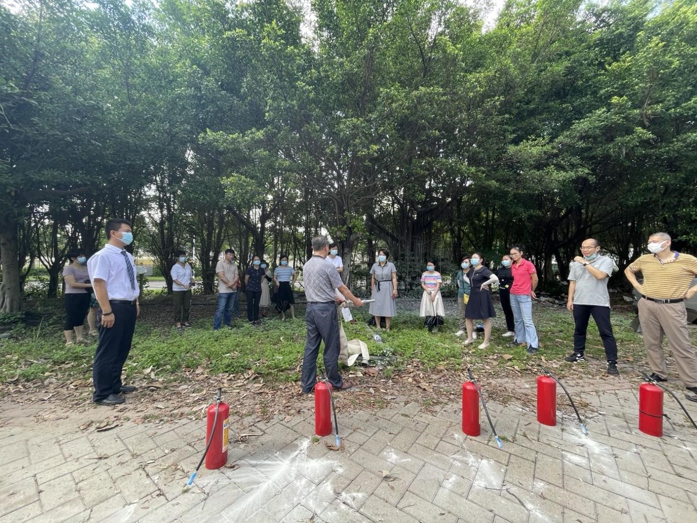 活动由保卫处许达荣科长协同物业组织实施。首先由许科长现场讲授干粉灭火器的使用范围和注意事项、如何定期检查灭火器状态、灭火的步骤和细节;所有老师在物业工作人员的口令指挥下,整齐划一,分组、分步骤一一进行演练。许科长针对喷灭方向和位置等细节不规范的操作还进行了点评。最后许科长对消防水带的使用做了讲解和操作示范。该次活动通过理论结合实际演练,让每位实验室安全责任人熟练掌握基本的消防设施的使用。对提高实验室应急处置能力有重要意义,在面临应急安全事故时能更加从容。