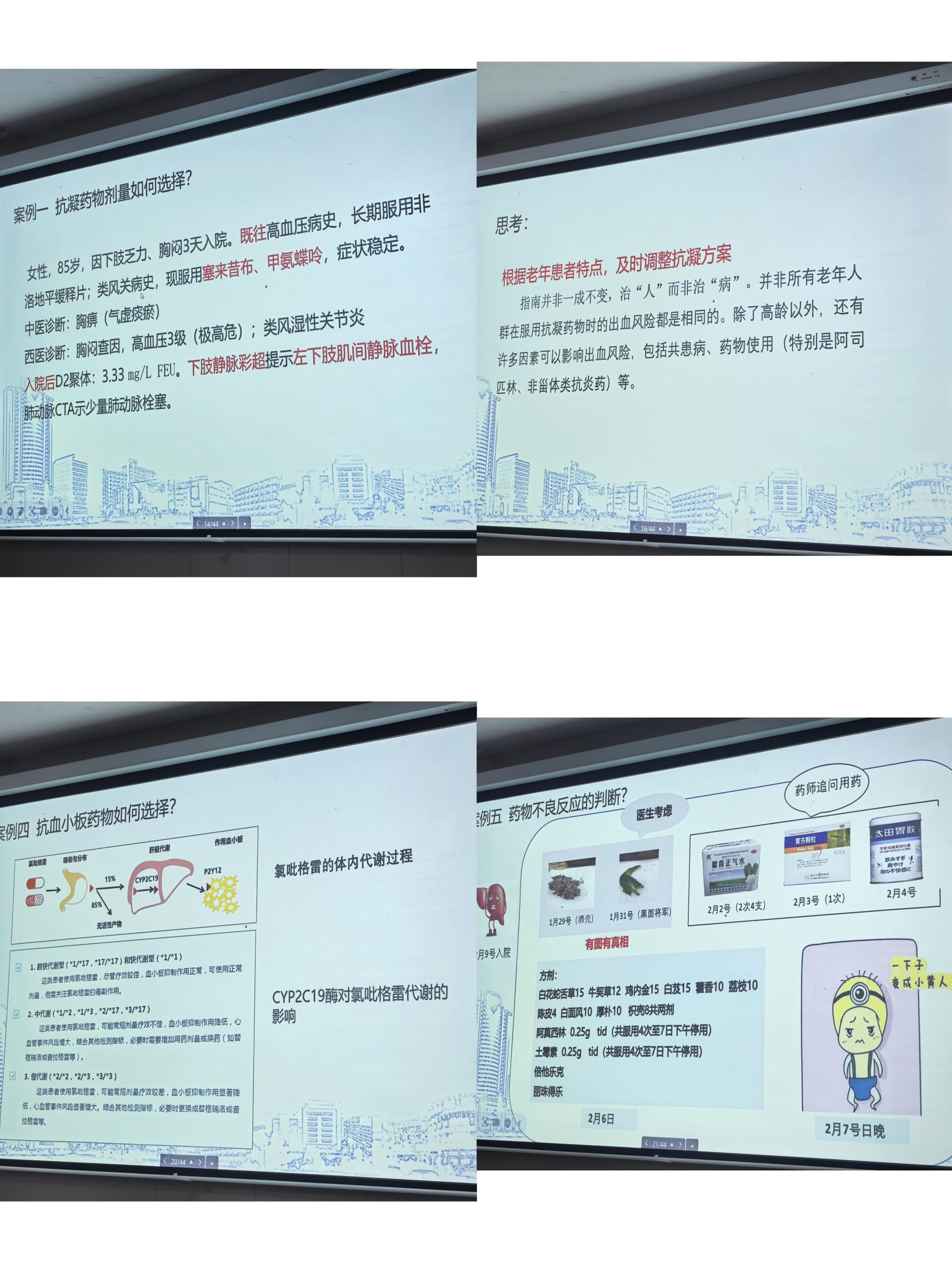 东省中医院临床药学科的基本情况,并详细阐述了临床药师的工作模式。她提到,临床药师的工作涵盖了药学查房、药学会诊、院内疑难病例讨论、门诊处方点评、住院医嘱审核、药物不良反应监测、药学门诊、药物咨询以及中药临床药师培训基地带教工作等多个方面。这些工作不仅体现了临床药师的专业素养,更展示了他们信息化、制度化、规范化的工作模式。讲座中段主任结合具体临床案例深入讲解了临床药师如何参与临床诊疗、进行门诊处方点评,以及如何通过登录临床药学管理系统的处方前置审方系统,进行规则制定、规则维护、人工审核等工作,有效降低门诊系统中含西药中成药的用药风险率。段主任提到在一次呼吸科会诊中,临床药师通过及时调整抗凝药物利伐沙班的剂量,有效避免了患者出血风险,保障了患者的安全。这些案例不仅彰显了临床药师的专业水平,更体现了他们对患者生命安全的高度负责。此外,段主任还介绍了自己在药学监护方面的工作经历。她提到,许多医生因担心万古霉素的副作用而不敢使用,但在她的积极建议和干预下,大德路总院万古霉素药物浓度监测的病例数显著增加,为更多患者提供了有效的治疗方案。这一成果不仅提升了医院的临床用药水平,更为患者带来了福音。