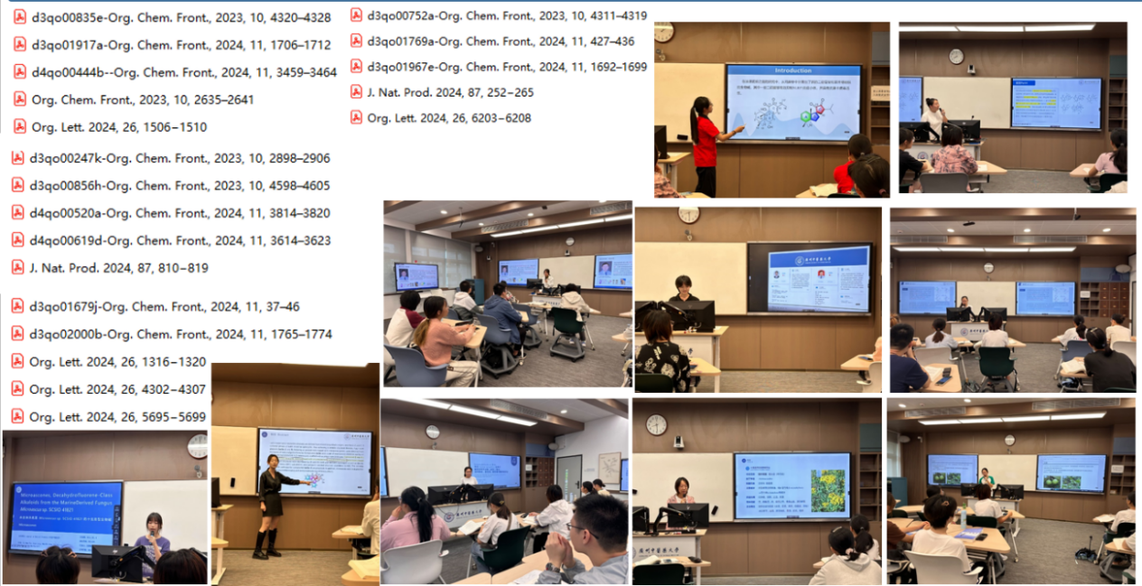 2024年12月11日上午中药学“4+5”创新班在教学楼A210进行《中药化学》权威期刊Online文章学期末总结汇报。从本学期初开始,课程负责老师张翠仙教授结合《中药化学》课程内容,精选一区TOP期刊(Organic Letter、Organic Chemistry Frontiers、Journal Natural Products)Online文章22篇,员工自由选择(人均至少一篇且不重复),进行员工课堂前10分钟文章内容PPT展示。学期末根据课程内容和员工精读文章结构特征自由组合,通过文献对比阅读,进行小组课堂展示,教研室何细新教授也参与本次课堂展示。课程实施受到公司领导的重视,白云龙副经理(主持工作)、王建刚副书记、龙泳伶副经理亲临课堂展示现场,靳红磊副经理进行课程督导。