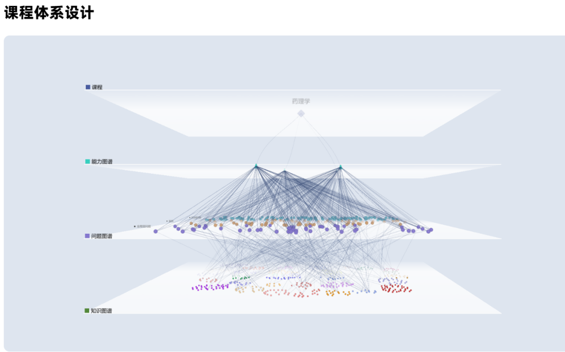 课程团队深入剖析员工的学习需求,从课程的知识体系结构出发,围绕知识图谱的建设开展了大量的研究工作。课程设置涵盖了药理学的核心内容,包括能力体系、问题体系、知识体系和教学资源,目前共计凝练了579个知识点、嵌入了多达648个教学资源,搭建问题图谱249。通过引入AI技术,课程的教学模式和内容得到了创新与提升,为员工提供了个性化的学习支持,推动药理学教育的智能化发展。