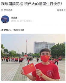 10月1日早,谈球吧体育官网入口举行庄严而又隆重的升国旗仪式。谈球吧新生积极参与,与国旗合影并在易班发布专属祝福。