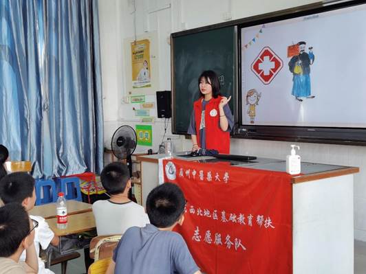 中医药文化进校园,队员在进行中医药文化典故授课