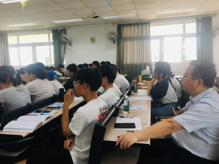 课堂上,任课教师邓刚老师向同学们讲解了辛亥革命与君主专制制度的内容,结合历史图片从人们举起近代民族民主革命的旗帜,讲到辛亥革命及民国的建立。同学们认真听讲,课堂氛围也十分活跃。刘中秋副董事长坐在课室,全神贯注地听课并认真做笔记。课后,他与邓老师进行了简短而亲切的交谈。