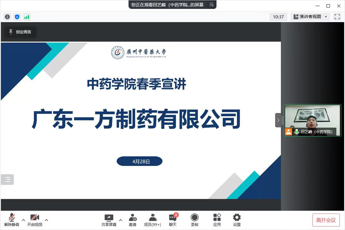 4月28日晚上,谈球吧协同广东一方制药有限公司举行了线上宣讲会,谈球吧詹若挺经理,党委陈其煌副书记,一方制药人力资源中心瞿俊经理、孔欣珂专员及400余名员工参加了宣讲会,公司就业服务中心指导老师田艺峰主持。